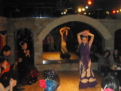 スペインのタブラオ風になった店内は、フラメンコ好きな方やフラメンコを習われている方々でほぼ満席状態。日本でのフラメンコ人気の高さをあらためて思い知らされました。