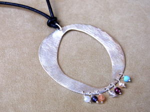 スターリングシルバー(SV925)の楕円のリングに、見た目にも涼しげな天然石のビーズがあしらわれています。