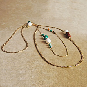 こちらのバージョンは、マラカイトとタイガーズアイを組み合わせて、シックにまとめています。