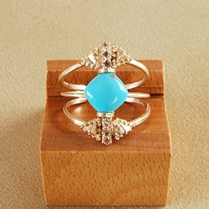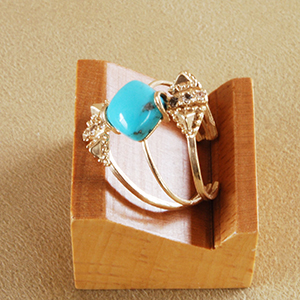 中央のターコイズ、その上下のトパーズが輝く王冠のようなモチーフが印象的です。