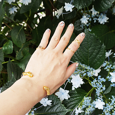 そんな時、モードな雰囲気のベアトリス・パラシオス(BEATRIZ PALACIOS)のリング&ブレスレットの重ねづけをお楽しみください。