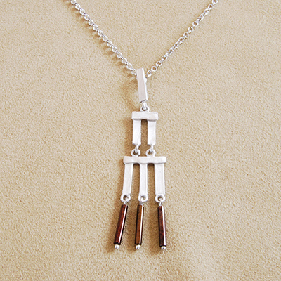 マットな質感のスターリングシルバー(925)の先で、艶のあるガラスチューブがフリンジのように揺れるモチーフ。