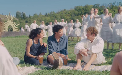 長編デビュー作の「ヘレディタリー」のヒットで注目を集めたアリ・アスター(Ari Aster)監督の2作目です。ホラーというと暗い映像が普通ですが、本作は白夜のスウェーデンが舞台で、ほぼ日が暮れません。明るい陽光と豊かな自然環境に包まれ、ふんだんに花が飾られた祝祭の村で物語が展開していきます。