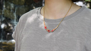 ファッション サマーセール:赤いエナメルネックレス&ストライプ柄トートバッグ
