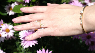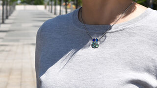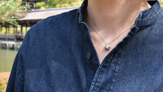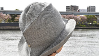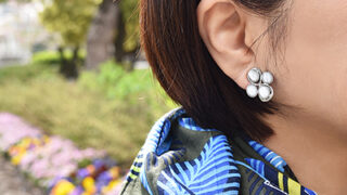 ファッション 帽子とピアスのいい関係、平たくたためるグレーの帽子×天然石ピアス