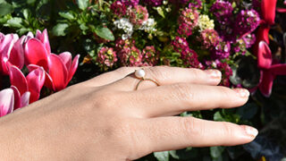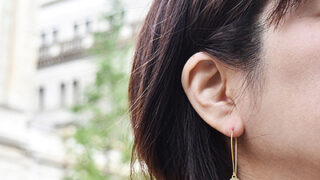 Jorge Morales ホルヘ・モラレス2020春夏新作:フレッシュなパールを添えたゴールドメタルの縦長ピアス